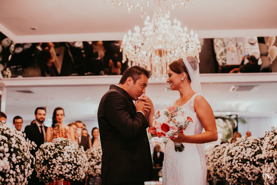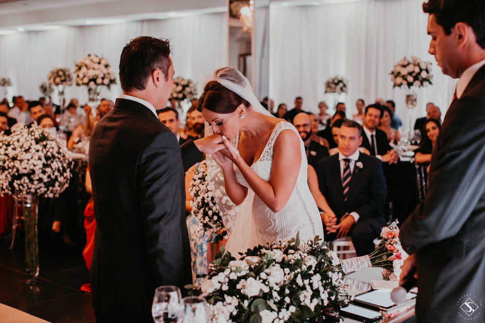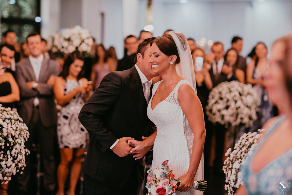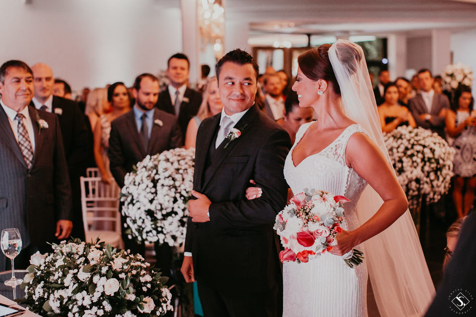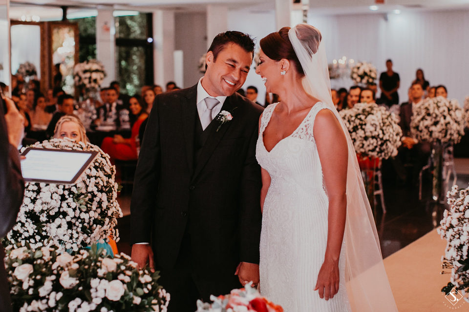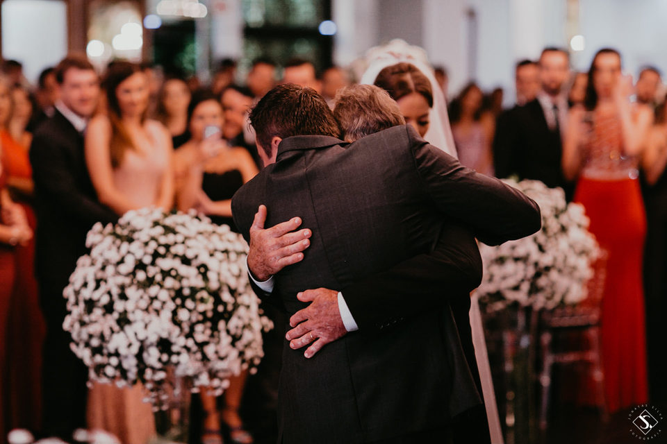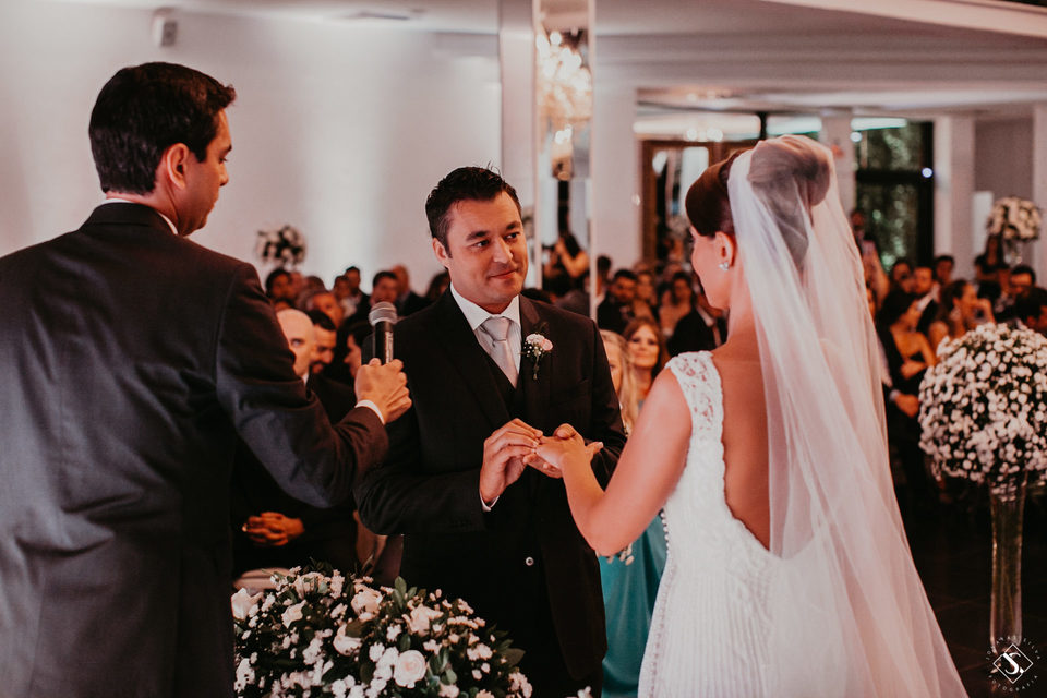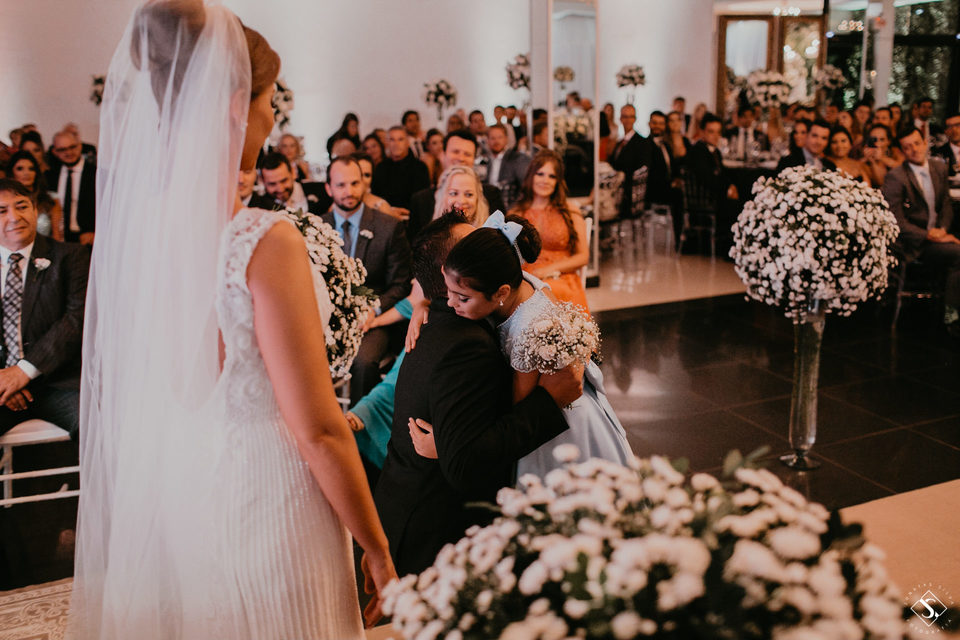 O amor é um sentimento forte, vivo, poderoso, e geralmente é fácil reconhecer ele em um ambiente, em alguns relacionamentos, e algumas atitudes!! E nós como fotógrafos de casamento, procuramos por ele, pelo amor!! E em muitos casos encontramos ele nos detalhes!! E não se engane, achando que detalhes, são coisas pequenas, detalhes são peculiaridades, particularidades de algo!! Sendo assim encontramos o amor nessas particularidades do casal, do casamento, da família!! E no casamento da Aline e do Diego, não foi difícil de encontrá-lo!! Desde o making off da noiva, encontramos presentes do pai e da mana, pra noiva Aline, e vimos a carta, com palavras cheias de amor!! E quando a noiva pronta, tentou ensaiar seus votos, e a voz embargou, os dedos se entrelaçaram e uma lágrima surgiu no canto dos olhos, e ela logo espantou pra longe!! É nos detalhes, são momentos, tão rápidos e reais!! Nós sentimos, nós encontramos o amor, no cuidado, na lembrança, de colocar um bouquet na cadeira ao lado do pai na cerimônia, flores, para representar uma pessoa tão importante, a mãe da noiva!! Flores, com sua beleza e perfume, que nos remete a memória, alguém que faz tanta falta, ainda mais num momento tão importante!! Encontramos amor, na troca de olhares entre pai e filha, entre o noivo e sua mãe, na mana chorando, nos convidados sorrindo!! Encontramos o amor, na troca de votos mais engraçada, na troca de alianças entre sorrisos, no beijo apaixonado!! Encontramos amor, na escolha de não ter valsa, por não representar eles, o casal!! Uma escolha deles, um auto-conhecimento, e um respeito!! Encontramos amor neles dançando juntos, neles dançando loucamente com os amigos!! Encontramos o amor!! Como é bom trabalhar com o amor!! Como é bom, trabalhar rodeado por sentimentos que nos animam, nos trazem paz, e nos fazem sentir pessoas sortudas!! Como é bom!!