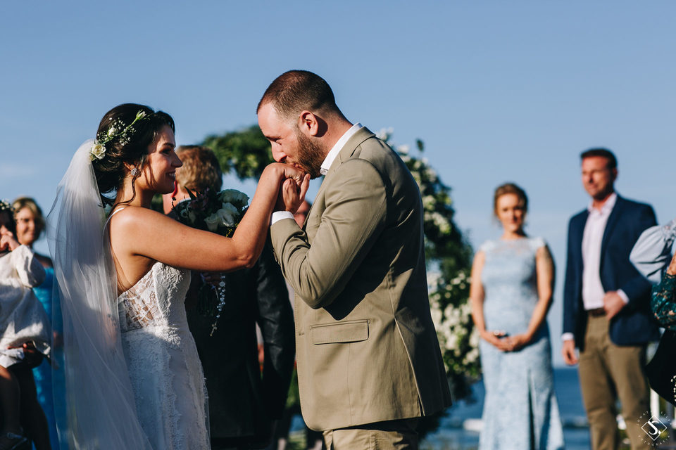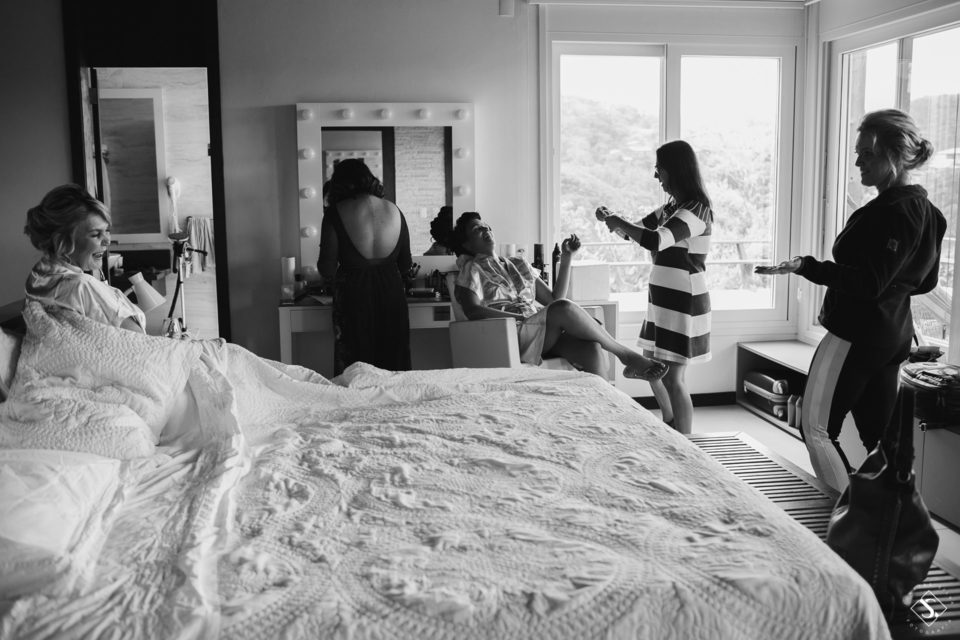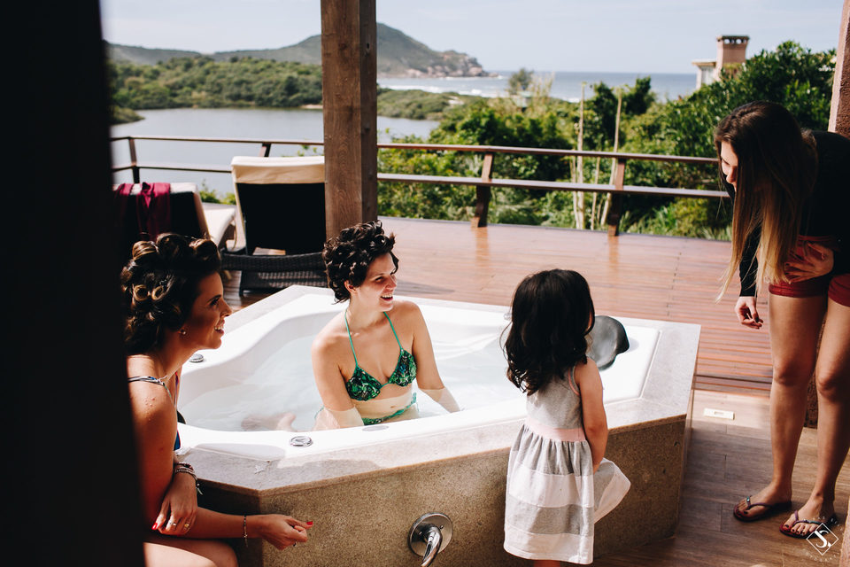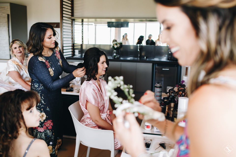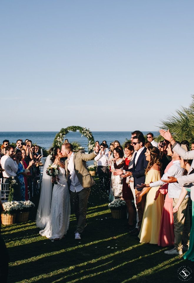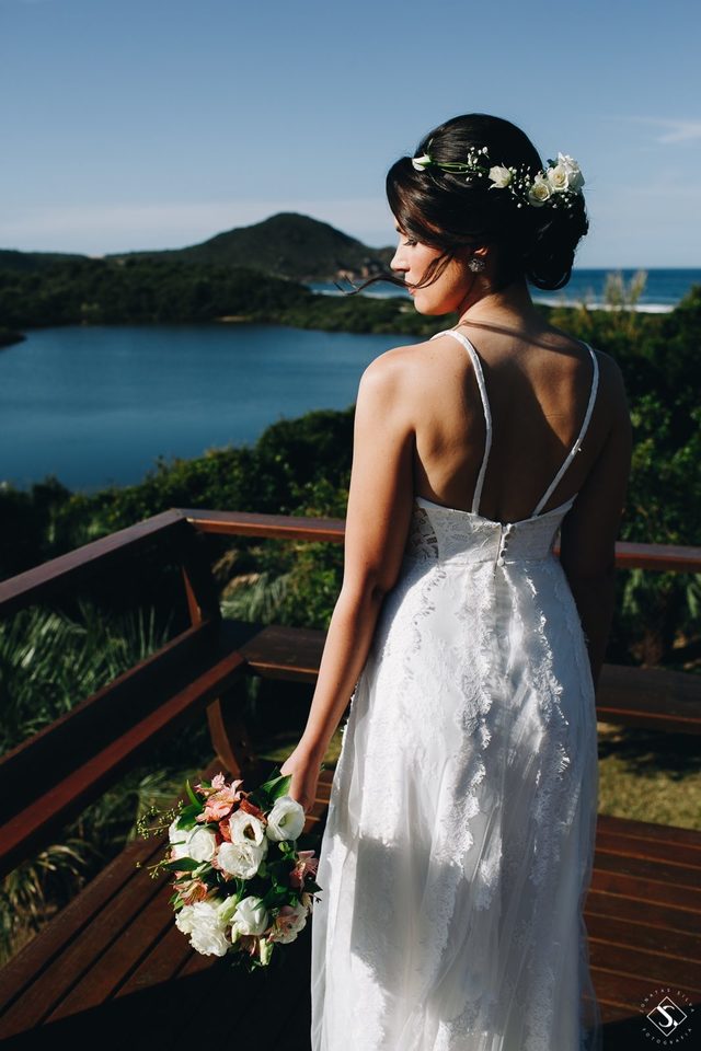 Nós sempre soubemos e vimos que a fotografia é um privilégio na nossa vida!! Poder trabalhar rodeado de amor e pela felicidade, é algo que deve ser valorizado, e sempre é dia de agradecer por isso!! E é impossível falar de agradecimento sem lembrar desse casal querido, a Thalita e o Tobias!! Eles que são de São Paulo, e vieram fazer o casamento na Praia do Rosa, que nos escolheram como fotógrafos de casamento e que fizeram nós nos sentirmos em casa para fotografar!! Eles que escolheram fazer o casamento de dia na Fazenda Verde, e que fizeram um casamento ao ar livre, lindo, com a cerimônia de frente pro mar, com uma vista de tirar o fôlego! Eles que viraram amigos do celebrante que chorou como convidado e depois fez todos chorarem com suas palavras!! Eles que escolheram tudo com muito carinho, muito amor, e depois aproveitaram cada momento e muito!! Eles que formam um casal super tranquilo, apaixonados e de bem com a vida!! Hoje é o dia deles aqui no blog!! A noiva escolheu se arrumar somente com a mãe!! As amigas, madrinhas e convidadas, podiam ir e voltar para visitar a noiva, e assim foi tão bom, como disse a noiva, a cada amiga que entrava era um novo suspiro, um novo carinho!! A maquiagem de noiva, e o cabelo ficou aos cuidados de quem sempre maquiou ela, desde os 15 anos, quando ainda nem era profissional, HAHA, foi a melhor amiga, imagina como foi especial!! E perto da hora da celebração, o dia que estava nublado abriu, virou azul, e o sol se fez presente, e foi tudo muito perfeito!!