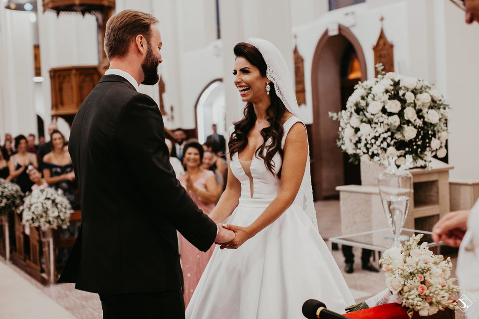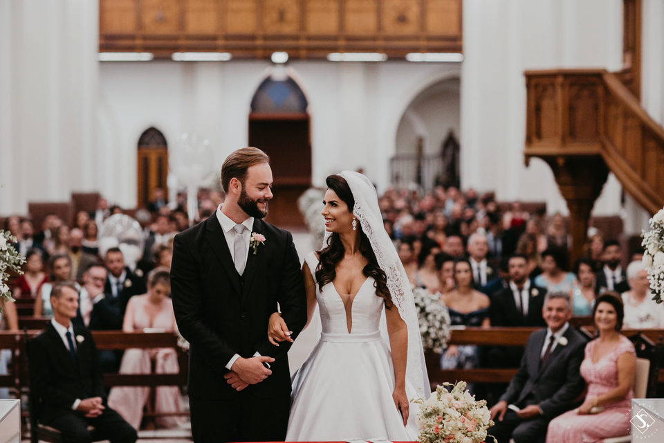 Sexta-feira chegou e pra deixar ela ainda melhor, é hora de ganhar uma dose de amor, é hora de rever as emoções que envolveram o grande dia de um casal lindo, é a hora de ver as fotos de casamento da Mariana e Rafael!! Eles já estiveram aqui no nosso blog, com a sessão pré-casamento na Guarda do Embaú!! E agora eles estão de volta, para gente contar como foi o casamento deles!! Eles que escolheram fazer o casamento na Igreja, e receber a benção na presença dos amigos e familiares, tiveram como palco para a união e para o amor deles a linda Igreja Matriz de Santo Amaro, e em seguida recepcionaram seus convidados no Centro de Eventos Nascer do Sol, e estava tudo incrível!! E como a noiva quis casar na igreja, ela escolheu trocar o vestido de noiva, um para a igreja e outro para dançar e curtir a festa! E imaginem uma noiva feliz, agora multiplica por 10, HAHA, essa era a Mariana!! Ela estava com um sorrisão estampado no rosto, do inicio ao fim do casamento, a felicidade e o amor, estavam reinando por ali, e o noivo claro, correspondia a todo esse amor e toda essa alegria da noiva!! Era lindo de ver esses dois juntos!! E o amor é sempre bonito de se fotografar, ele é visível, real e indescritível!! E esse casal é cheio de amor!!
