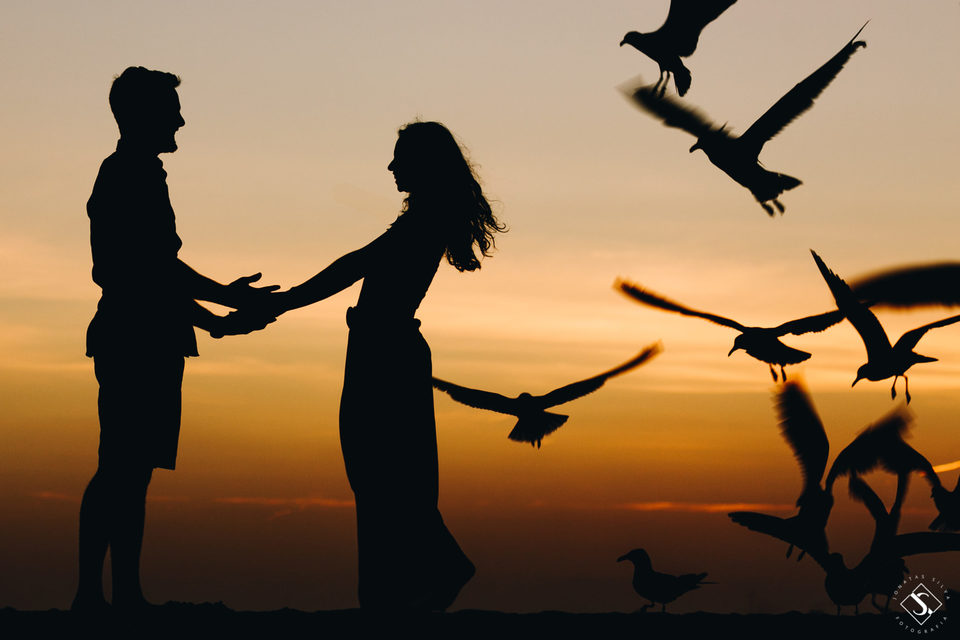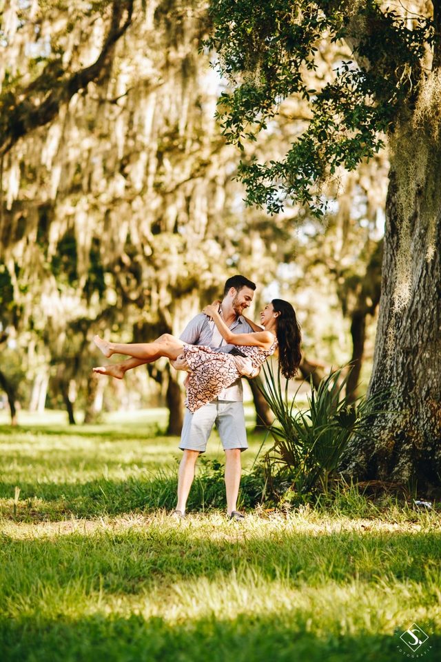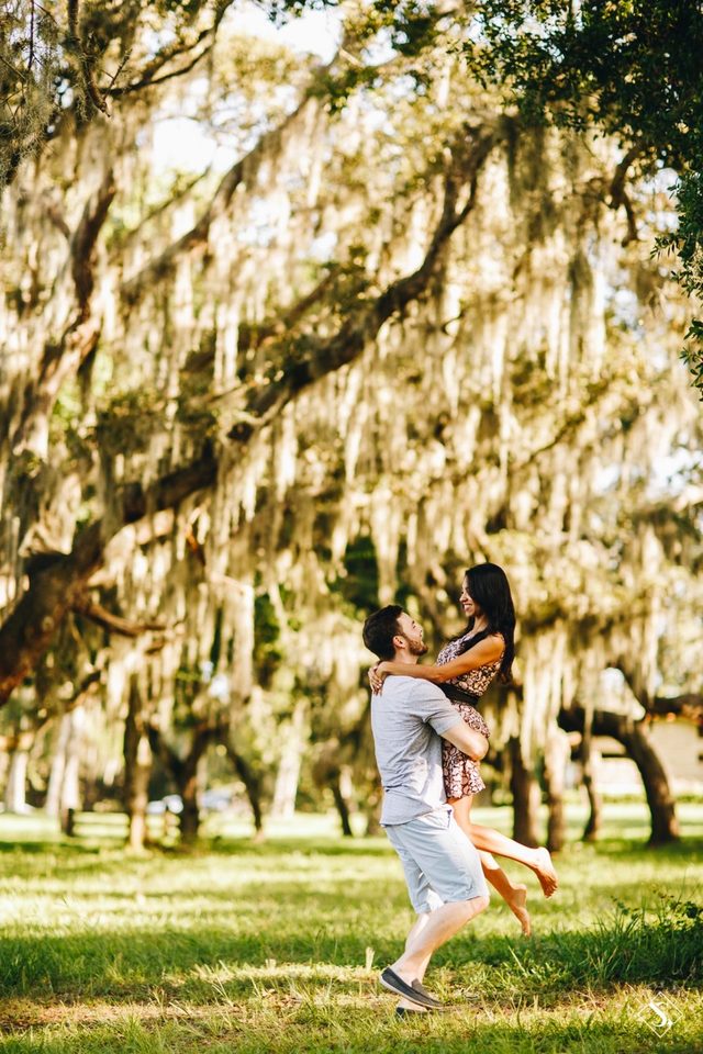 Grazi e Joe são os noivos de hoje, eles que moram em Tampa na Flórida, escolheram fazer o casamento em Florianópolis!! Que honra né, eles escolheram nossa Floripa para ser o palco do amor deles, do grande dia, o dia do sim, e por enquanto que o casamento não chega, fomos até Tampa para conhecer melhor eles e claro para fazer a sessão pré casamento na Flórida!! Grazi e Joe, formam um casal divertido, lindo e cheios de histórias, que nos receberam super bem!! Como eles estavam em casa, foram eles que escolheram os lugares para fazer a sessão de fotos deles, e nos levaram para desbravar, nos encantar com a cidade de Tampa e fazer muitas fotos!! Fomos fazer a sessão pré casamento em Philippe Park e lá já vimos que o dia ia render fotos lindas, e espontâneas desse casal!! Nos apaixonamos de cara pela natureza do lugar, a beleza, a luz que tinha, a paz que transmitia e principalmente pela sintonia que eles, como casal, criaram!! E quando a sessão de fotos no parque terminou e o final de tarde foi chegando, seguimos para fazer as fotos de casal na praia, e pegamos o pôr do sol em Clearwater Beach!! Para nossa surpresa tínhamos mais modelos para as fotos, as gaivotas, HAHA, que deram todo um charme para as fotos no pôr do sol!!