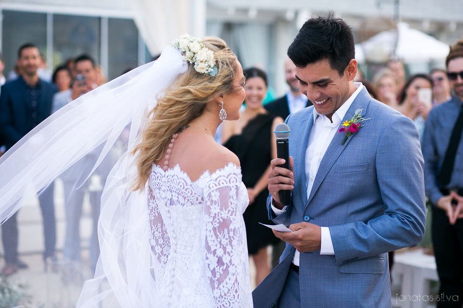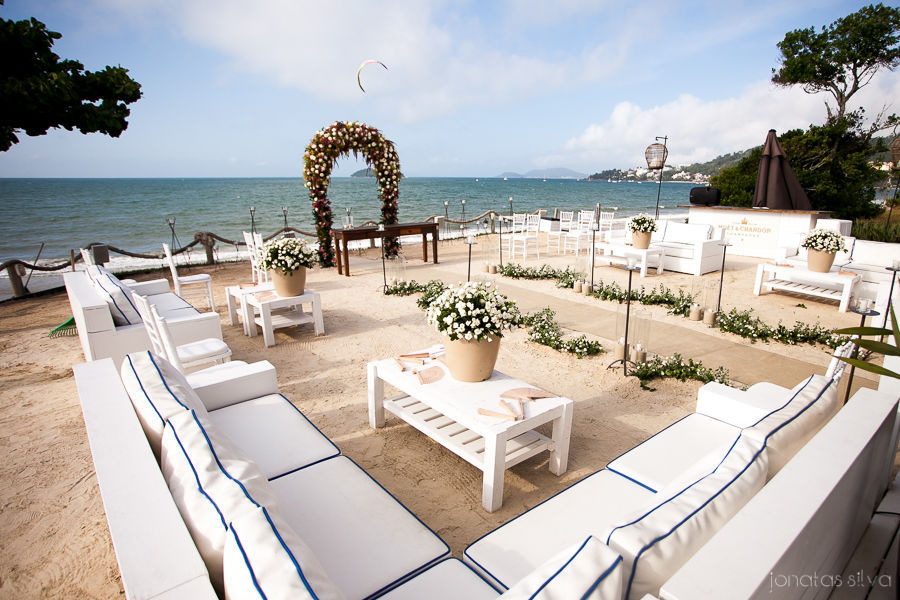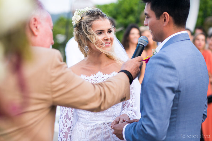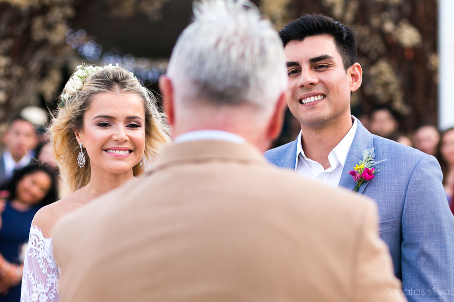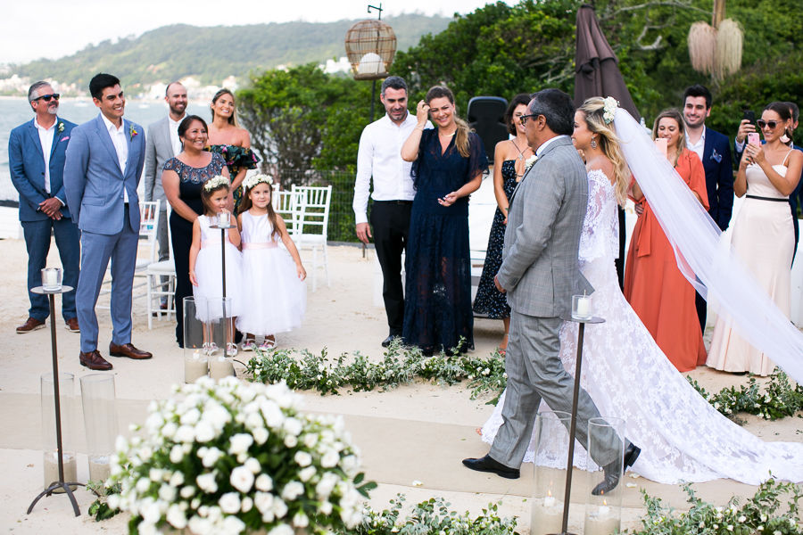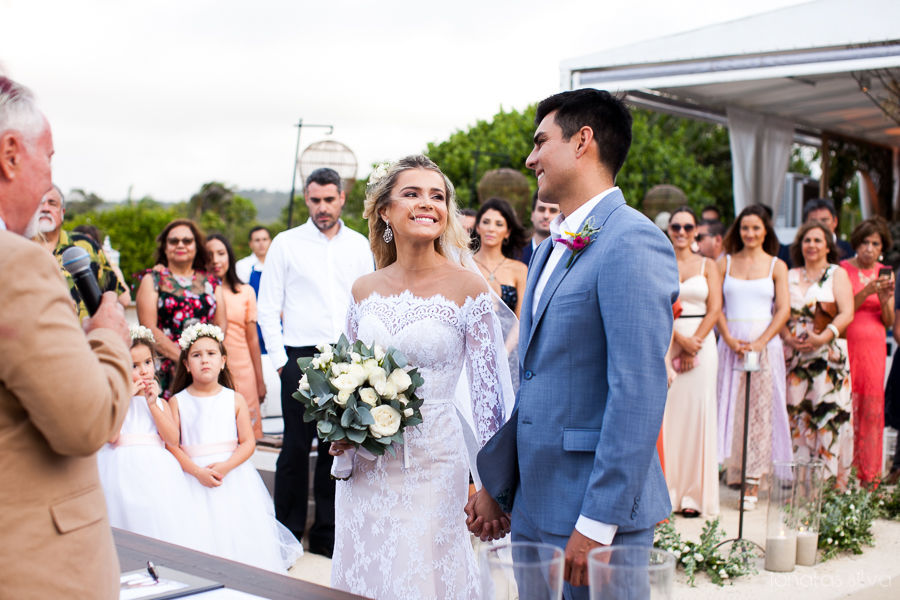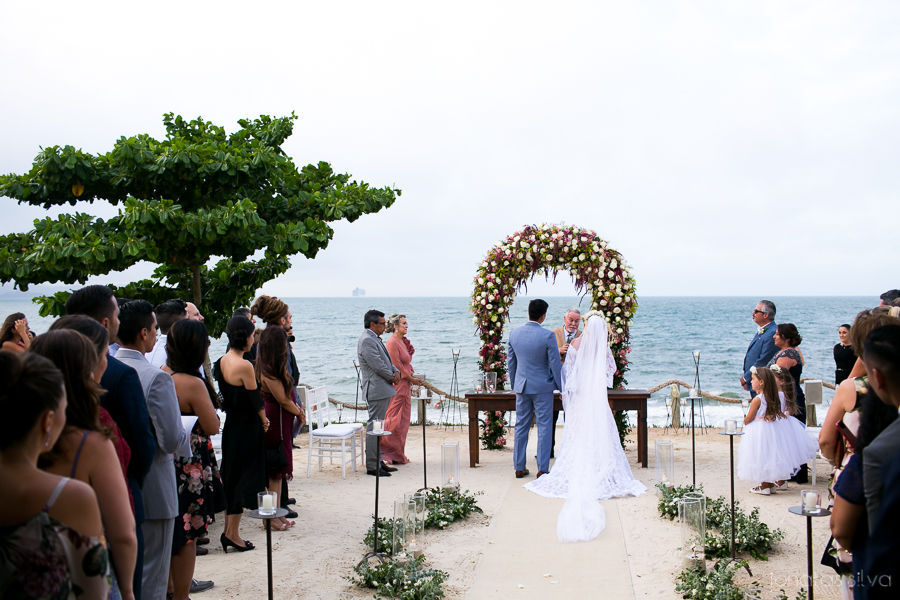O amor é força e leveza! É coragem, é verdade, é estar presente! É ser, fazer e ir! É ter, manter e deixar livre! É querer, é perceber é receber! É retribuir, é restituir, é sentir! O amor sempre nos surpreende, e escreve o rumo das nossas histórias. E com o casal de hoje não foi diferente! O amor veio pra transformar, e mudar suas vidas completamente. O amor encontra pessoas, e cria seus planos e oportunidades! E assim o amor encontrou sua forma de agir na vida deles! Ela brasileira, ele americano, um intercambio, e um amigo em comum, foi tudo que o amor precisou para escrever o inicio dessa trajetória. E hoje estamos aqui para contar e mostrar pra vocês a continuação e o desenrolar dessa história linda. Chegou o dia do casamento desse casal querido!! Juliana e Pedro são os protagonistas que o amor escolheu. E o casal decidiu casar na praia, e o lugar mais lindo para casamentos na praia é a nossa cidade, Florianópolis!! E foi o Acqua Plage em Jurerê Internacional o palco desse momento tão especial que reuniu pessoas de diferentes países para prestigiar o amor!! O casamento ao ar livre foi lindo e a cara do casal. Um lugar leve, divertido e com a natureza trazendo suas cores e toda sua beleza, tornando tudo ainda mais especial e esplêndido!! E para deixar esse dia ainda mais a cara do casal, não poderia faltar uma pista cheia de amigos e familiares, curtindo a festa, alegres porque o amor conseguiu mais uma vez!! Uma festa pra ficar marcada como a mais agitada e mais animada, parabéns casal, por essa energia tão boa!!