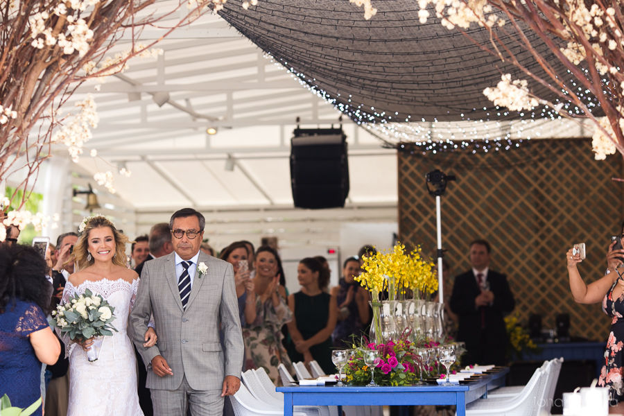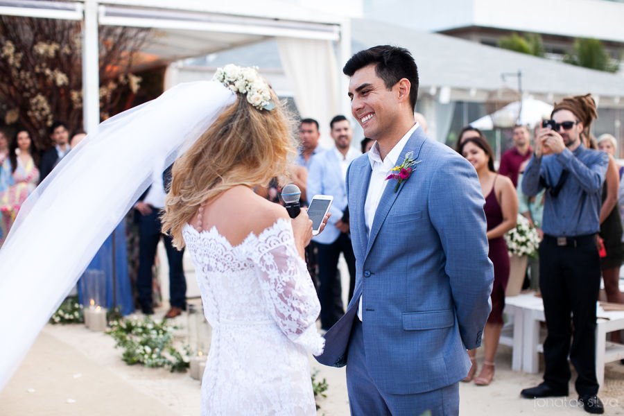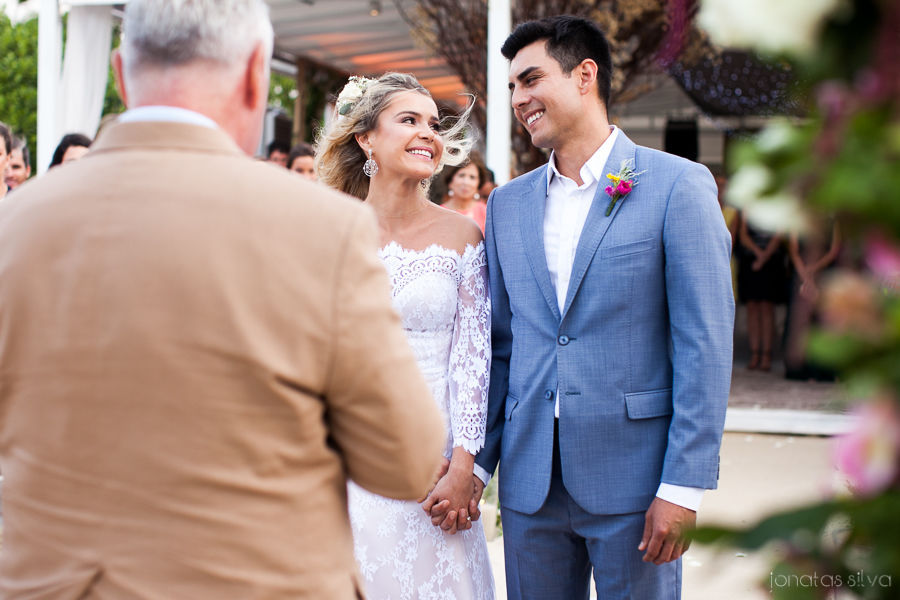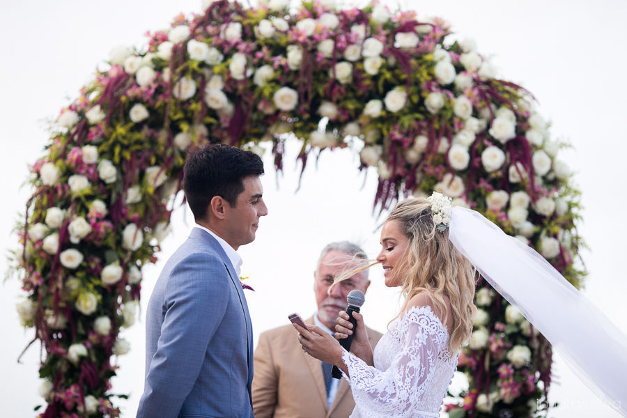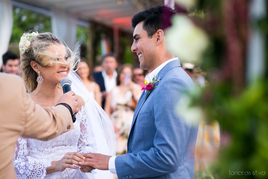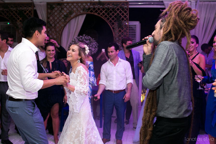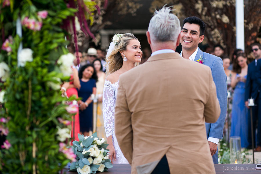 O amor é força e leveza! É coragem, é verdade, é estar presente! É ser, fazer e ir! É ter, manter e deixar livre! É querer, é perceber é receber! É retribuir, é restituir, é sentir! O amor sempre nos surpreende, e escreve o rumo das nossas histórias. E com o casal de hoje não foi diferente! O amor veio pra transformar, e mudar suas vidas completamente. O amor encontra pessoas, e cria seus planos e oportunidades! E assim o amor encontrou sua forma de agir na vida deles! Ela brasileira, ele americano, um intercambio, e um amigo em comum, foi tudo que o amor precisou para escrever o inicio dessa trajetória. E hoje estamos aqui para contar e mostrar pra vocês a continuação e o desenrolar dessa história linda. Chegou o dia do casamento desse casal querido!! Juliana e Pedro são os protagonistas que o amor escolheu. E o casal decidiu casar na praia, e o lugar mais lindo para casamentos na praia é a nossa cidade, Florianópolis!! E foi o Acqua Plage em Jurerê Internacional o palco desse momento tão especial que reuniu pessoas de diferentes países para prestigiar o amor!! O casamento ao ar livre foi lindo e a cara do casal. Um lugar leve, divertido e com a natureza trazendo suas cores e toda sua beleza, tornando tudo ainda mais especial e esplêndido!! E para deixar esse dia ainda mais a cara do casal, não poderia faltar uma pista cheia de amigos e familiares, curtindo a festa, alegres porque o amor conseguiu mais uma vez!! Uma festa pra ficar marcada como a mais agitada e mais animada, parabéns casal, por essa energia tão boa!!