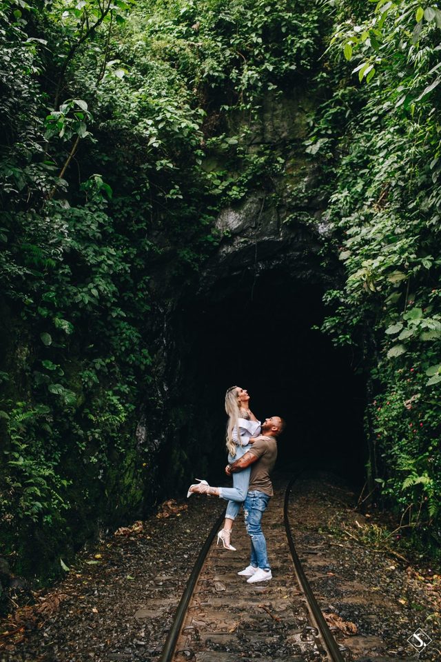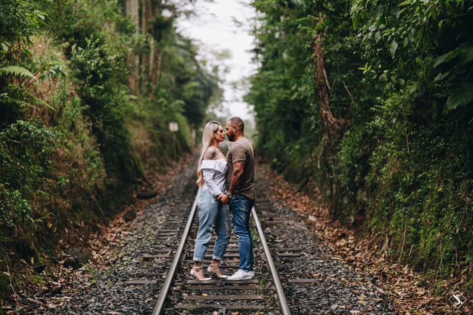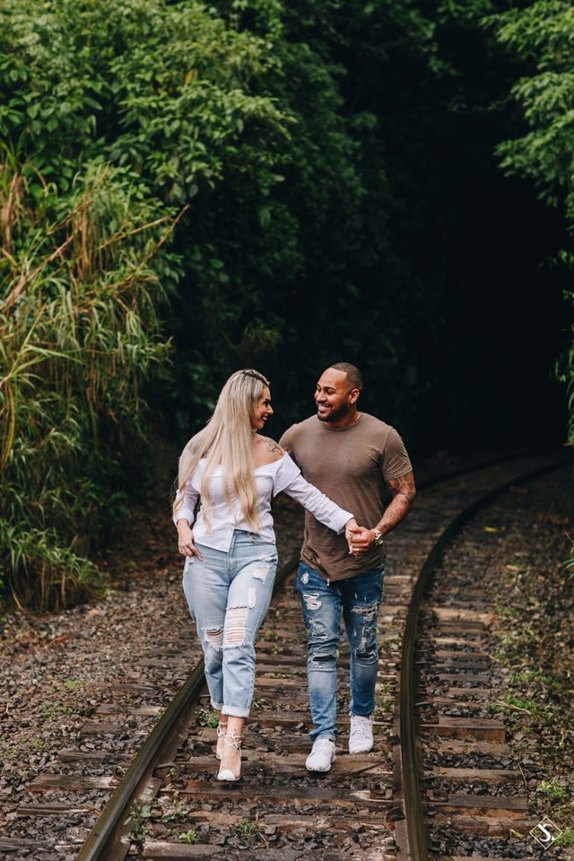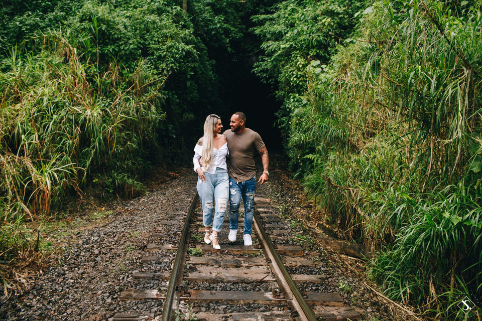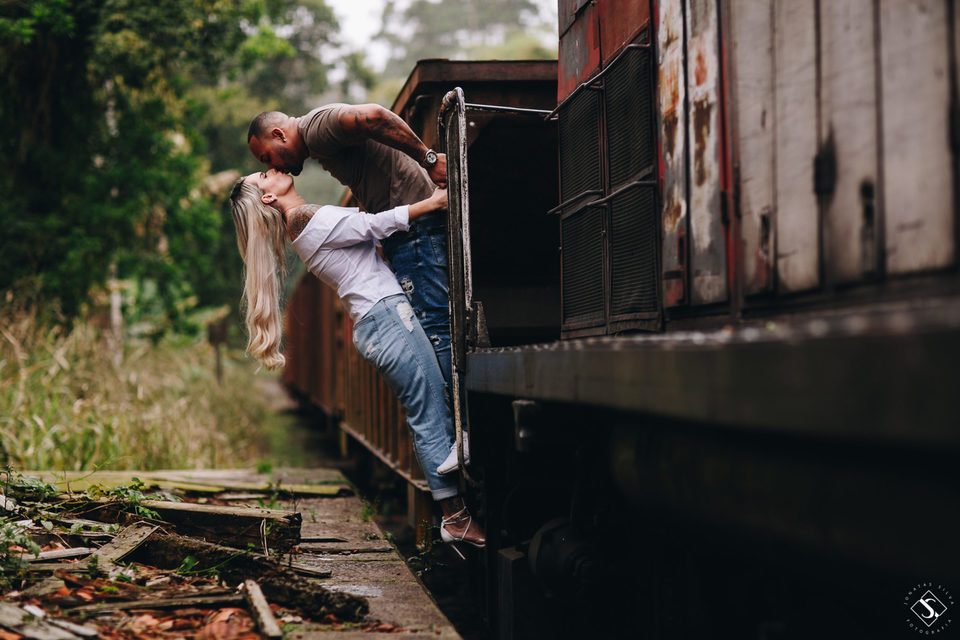 Camila e Juliano chegaram no nosso blog!! Já que estamos na semana do casamento deles, e todos já estão fazendo a contagem regressiva para esse grande momento, chegou a hora de ter eles aqui!! Hoje é o dia de conhecer um pouco mais desse casal e do amor deles, dia de conferir e curtir as fotos de casal lindas, que foram feitas na sessão pré casamento em um lugar diferente!! Acredito que assim como nós, vocês irão se apaixonar por esse lugar!! A noiva Camila, cheia de ideais, organizada e curiosa como é, pesquisou muito, e encontrou os dois locais da sessão de fotos, e veio feliz da vida contar para nós e perguntar nossa opinião, e claro, nós achamos incrível e topamos na hora!! Foram 3 horas de carro até chegar ao local, e valeu super a pena, né casal?! Foi uma tarde super divertida, cheia de descobertas, aventuras no meio do nada, sustos e teve até plateia na estação de trem, e óbvio, muitas risadas!! Ah e não podemos deixar de agradecer a Larissa, nossa guia nessa aventura, chamada pré-casamento, HAHA!! E de princesa da Disney, fomos as aventuras de Camila, da foto de vestido rodado na frente do casarão, ao jeans rasgado para a foto no trilho de trem!! E ficou tão incrível, tão cheio de personalidade, tão completo, tão Camila e Juliano! Sim, porque assim como o amor, somos pessoas com desejos, vontades, manias e mudanças!! E não existe regras na sessão pré-casamento, desde que represente o amor de vocês, nós iremos fotografar felizes da vida!!