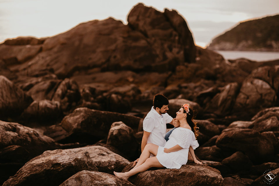 Dai e o Luiz foram nossos novinhos lá em 2015, são dois queridos, que amam a vida e amam estar juntos!! Eles que realizaram um sonho a 4 anos atrás, voltam pro nosso blog para contar mais uma parte da história dos dois, mais um momento feliz e de realização de sonhos!! Hoje eles estão na espera pela princesa deles, e por isso vieram até nós, mais uma vez, para agora fazer as fotos de gestante deles!! Claro que ficamos super empolgados e honrados por mais uma vez ser a escolha deles!! Então já que está chegando a hora da mamãe Daiane e o papai Luiz entrarem em ação, e conhecerem a Amabile (dia 21 está batendo na porta, aguenta coração!!), nada melhor que postar a sessão gestante na praia, para poder reviver esse dia, que foi super divertido e cheio de amor!!! Fomos pegar o nascer do sol na praia da armação, e como sempre foi demais!! A luz do sol, a luz do amor, e a luz do novo se encontraram, e tudo que podíamos sentir, era a felicidade!! A felicidade de formar uma família, a felicidade de poder amar, e a felicidade de esperar o bem mais precioso chegar, a filha!! Só quem é pai e mãe para saber, o misto de emoções que esse dia envolve, e para nós é incrível poder fotografar essa espera!! É um amor tão lindo, que o casal consegue nos transmitir sem perceber! E uma coisa é certa, a menina Amabile, será muito amada, mimada e educada, com os pais que tem, temos certeza disso!! Depois das fotos no nascer do sol fizemos a trilhinha e encontramos a praia do Matadeiro deserta, e ali, continuamos a sessão de fotos desse casal querido!! E ficou uma foto mais linda que a outra!!