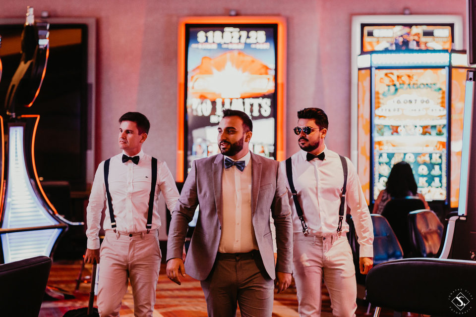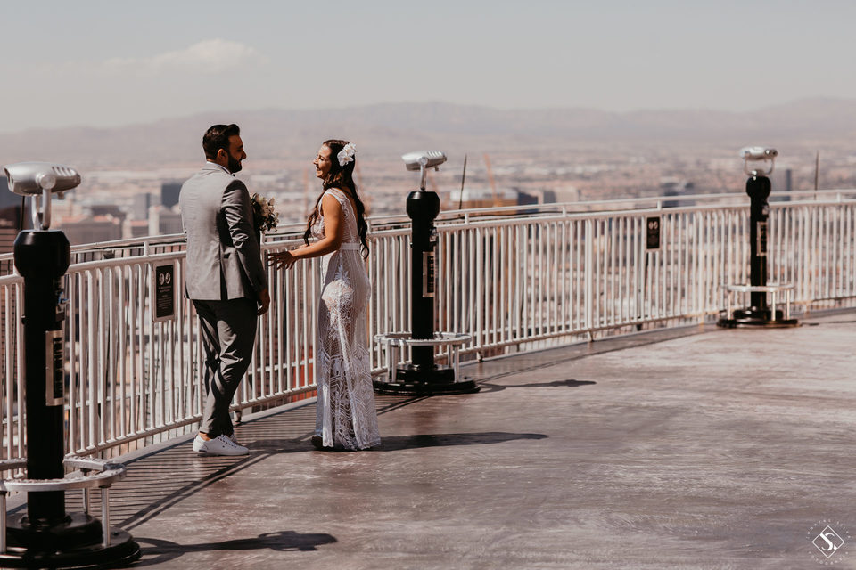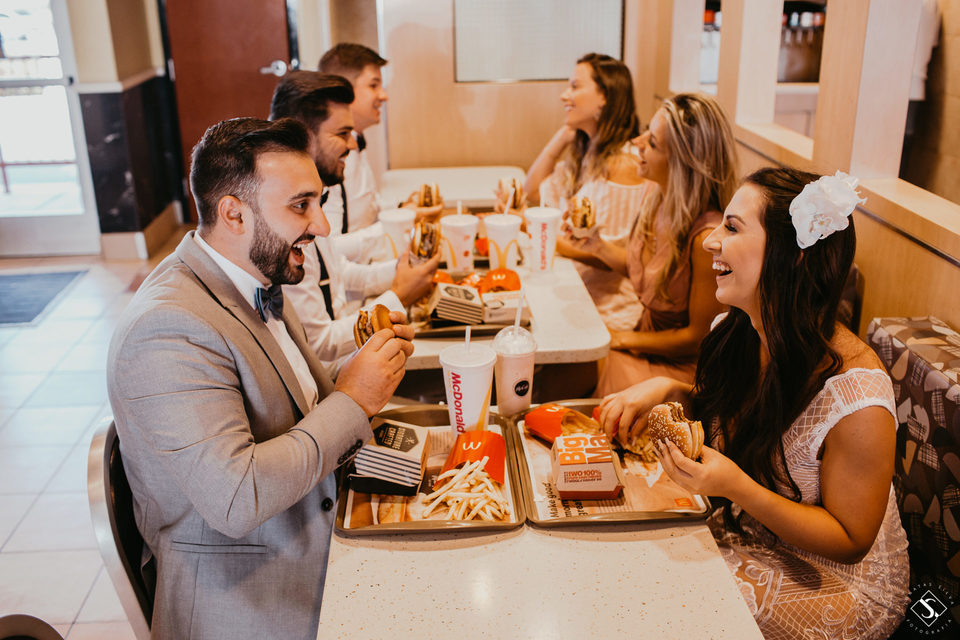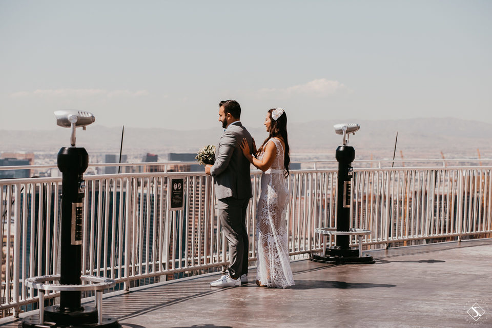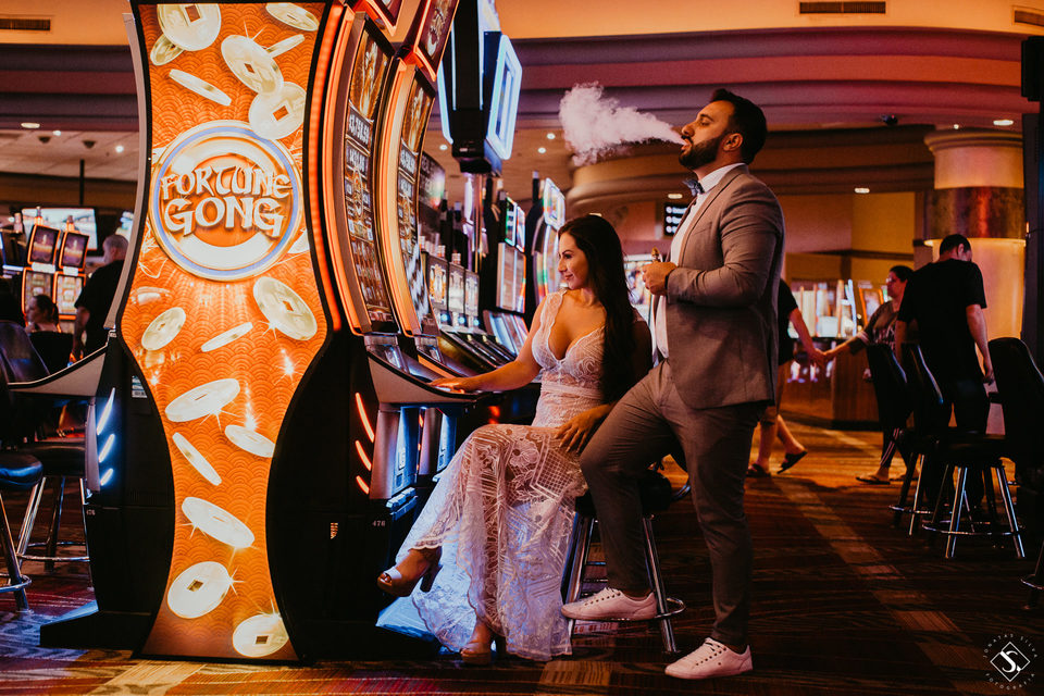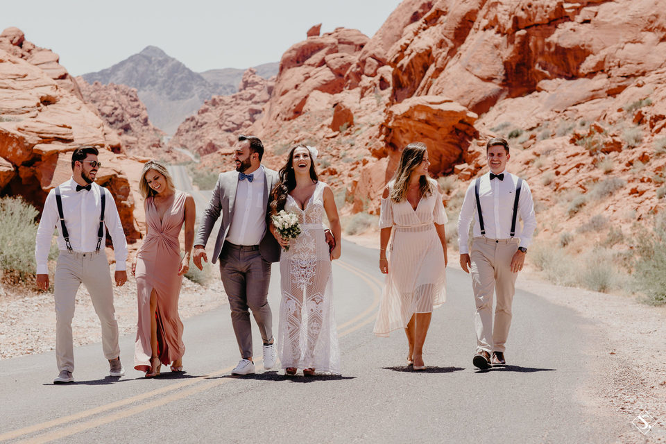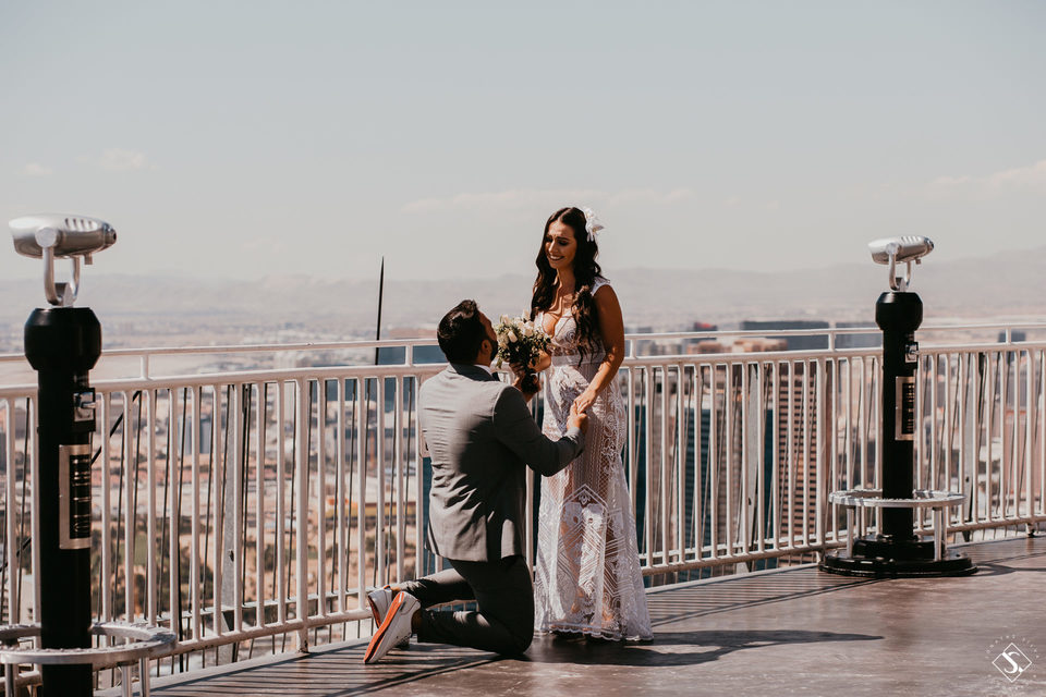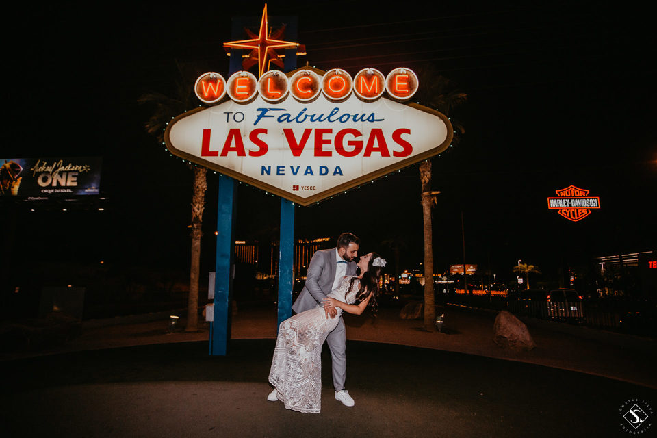 Um dos casamentos mais incríveis que fizemos, aconteceu como os casamentos de filmes, e foi um casamento no Grand Canyon! Quando o Neto e a Bruna nos procuraram, a ideia inicial, era casar em uma das capelas em Las Vegas, e a medida que íamos trocando mensagens, encontrávamos empecilhos que faziam essa ideia não ir para frente, e hoje sabemos que era por um motivo maior, para que pudéssemos realizar esse casamento em um lugar mágico e com um visual de tirar o fôlego!! E assim aconteceu, fomos para Las Vegas nos encontrar com eles, e ficamos no hotel Stratosphere, onde a torre tem uma das vistas mais bonitas, no top of the world, onde aconteceu o first look do casal, já que o casamento seria realizado a alguns km de distancia, eles precisavam desse primeiro contato especial e registrado! Depois da emoção de ver a noiva pronta, fomos rumo ao lugar onde seria feita a cerimonia do casamento, parando apenas no caminho para fazer fotos no Valley of Fire! E chegando lá, que espetáculo de lugar, na imensidão dos Canyons em Las Vegas eles trocaram os votos, as alianças, e deram o primeiro beijo como recém casados, foi lindo de ver e viver! E não acabou por ai, teve parada no Mc Donald’s para o jantar de casamento, e em seguida a festa foi uma balada na Limusine, com direito a parada na placa de Las Vegas e para finalizar com chave de ouro, hora do cassino!